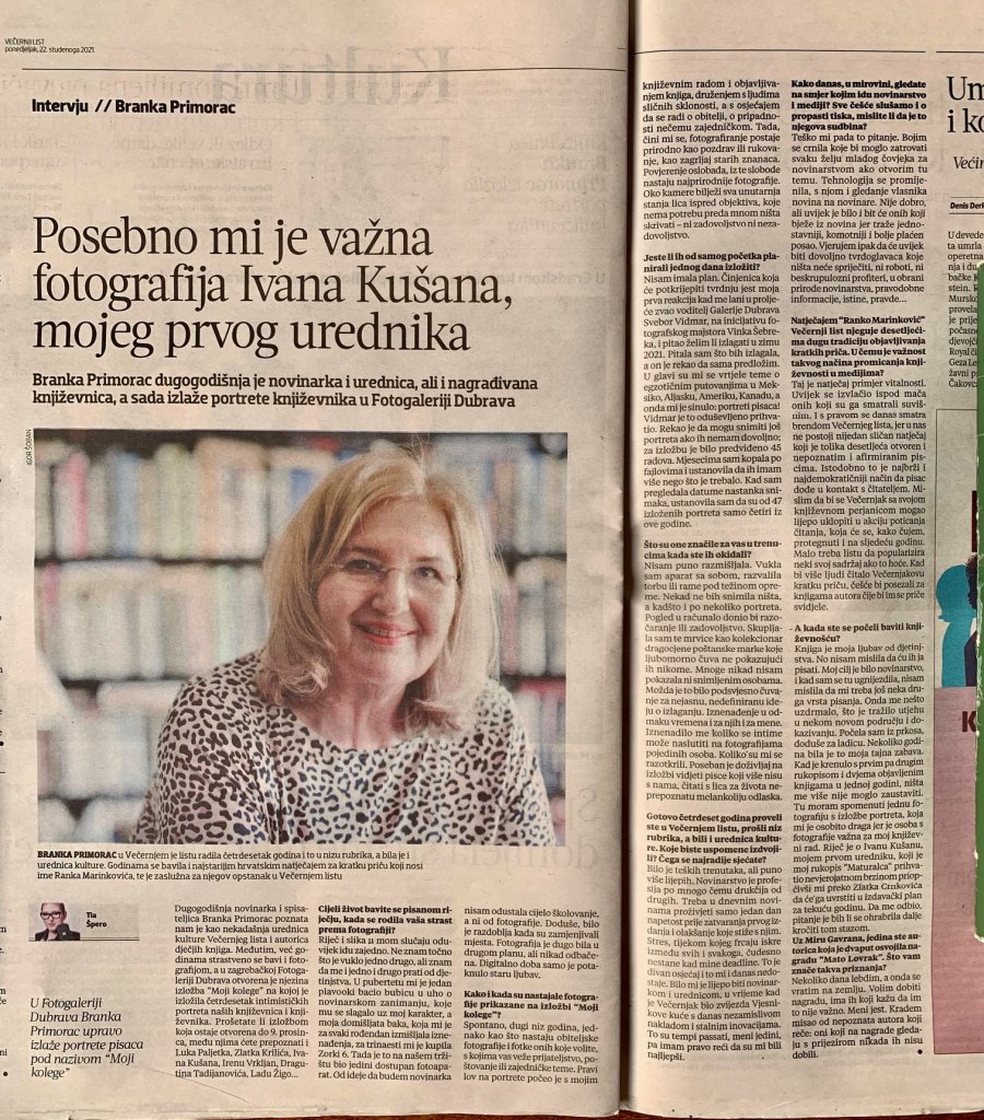 U svom već puno puta opisanom dugom kožnatom kaputu i s legendarnom kapom koja krasi gotovo sve njegove fotografije, osim moje, ušetao je Damir Karakaš. Potpisao se u knjigu dojmova crtežom Likote i komentarom izložbe od kojeg je autorici zatitralo srce. Većina ostalih kolega ispričala se kovid ispričnicom, ali smo ih zato gledali i komentirali njihove fotografije obješene na zidu. Došla je i kolegica iz Večernjaka Diana Kučinić, pa fotografkinja i profesorica na zagrebačkom Tekstlno-tehnološkom fakultetu Đurđica Kocijančić, kolega iz Fotokluba Zagreb i prijatelj s fejsa Željko Novaković te osoba koja je mogla prva imati ispriku za nedolazak, u koju nitko ne bi posumnjao, 94-godišnja Slavka Pavić – supruga legendarnog hrvatskog fotografa Milana Pavića – još uvijek aktivna fotografkinja! Došla je i OTV televizija. Moglo bi se reći: gotovo pa gužva.