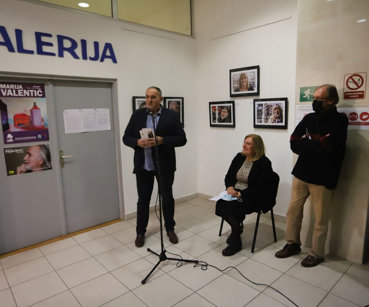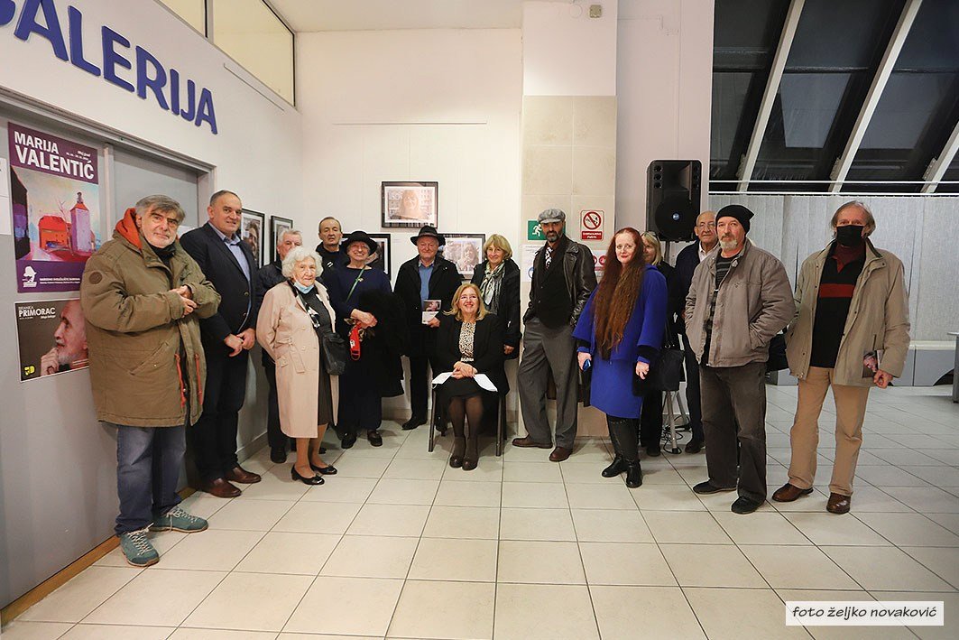 Što god se moglo zakomplicirati – zakompliciralo se. Već sam vidjela prazne hodnike Narodnog sveučilišta Dubrava, Galeriju s nas nekolicinom. Tužno! A onda su počeli dolaziti moji „modeli“, „Moje kolege“. Među prvima novinar i pisac Vlado Rajić sa suprugom Deanom Knežević, novinarkom i mojom prijateljicom, pa dragi prijatelj književnik Dubravko Jelačić Bužimski koji je dobio zadatak od Vinka Šebreka da pročita moju biografiju i njegov tekst iz kataloga. Jedino je on izloženu fotografiju „podijelio“ s prijateljem Mirom Gavranom, odnedavno predsjednikom Matice hrvatske. Iznenađen: otkud mi taj snimak? Za njima je pod maskom, kako priliči, ušetao Goran Tribuson, koji se našalio na račun dolaska u nemila vremena, rekavši „kako ja vama dvoma ne bih došao“, misleći i na Strahimira.