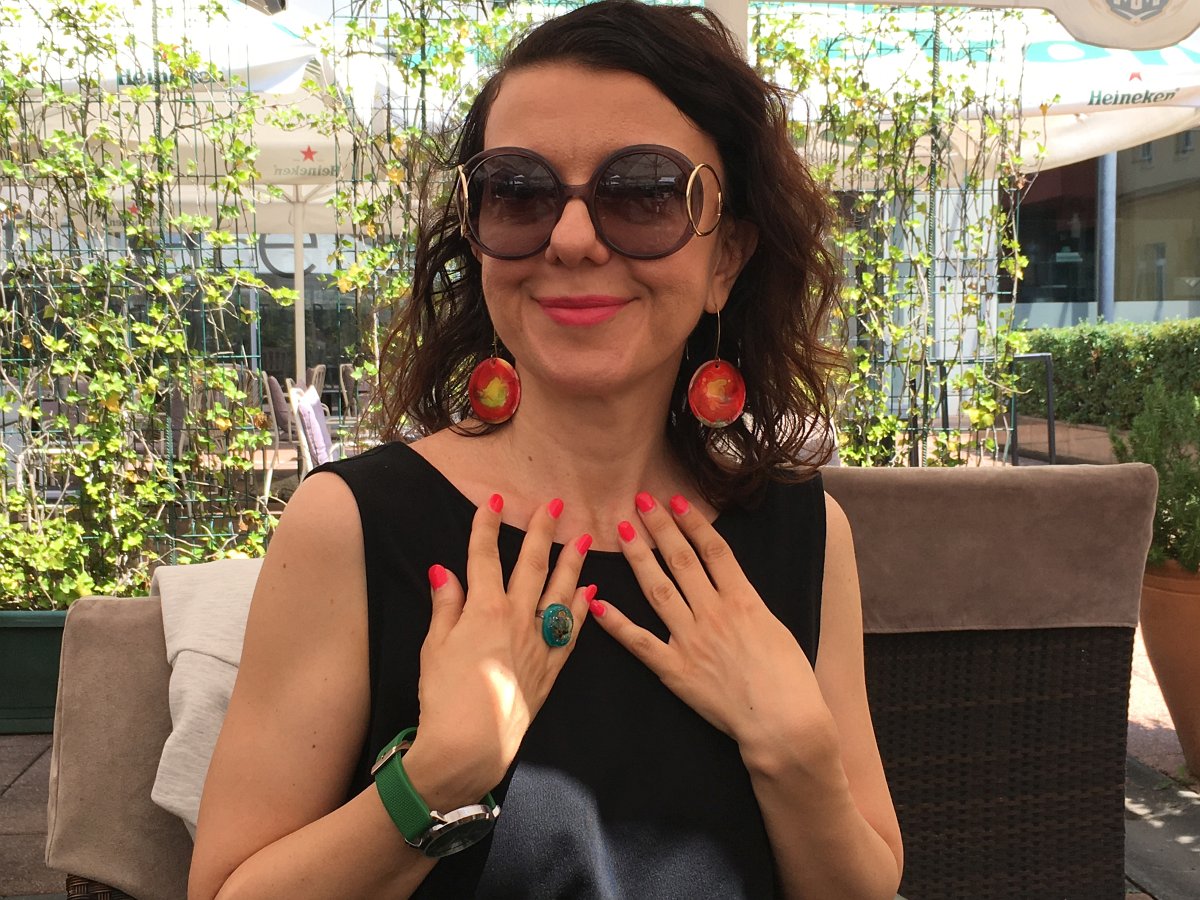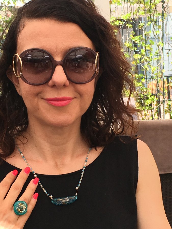 Tako smo na jednoj prijepodnevnoj kavi zaskočili našu Anitu Vlašić, prevoditeljicu i sudskog tumača, da se fotografira s nakitom moje kćeri Lade.