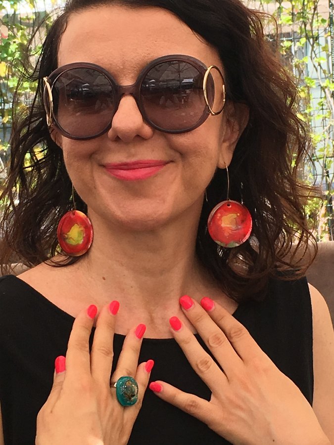 Slučajno su naušnice crvene, a ogrlica modra jer tako je odabrala Anita. No, ima ih i u drugim bojama i strukturama. I svaka je unikat. Tu se slučajno pojavljuje i Ladin prsten, rad rađen prije nekoliko godina, koji se odlično slaže s bojama medaljona na ogrlici.
