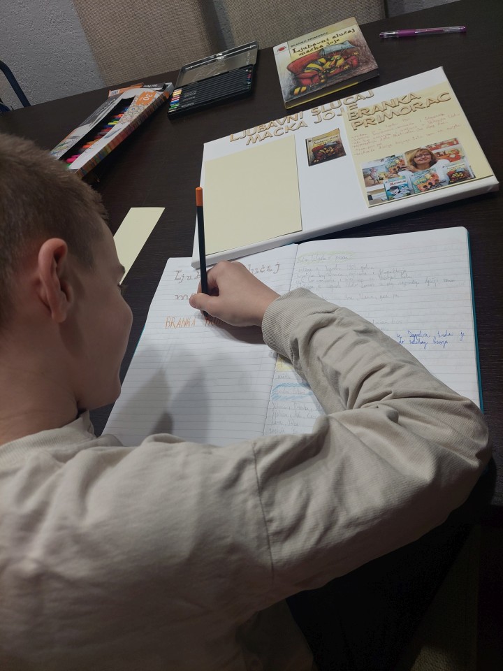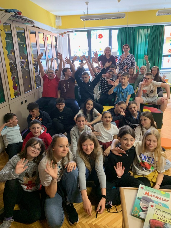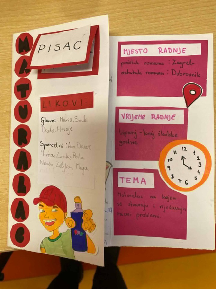 Još malo ćemo se zadržati na istoku zemlje. Doduše, nije riječ o živom kontaktu sa čitateljima već na daljinu, a uz pomoć moje drage prijateljice prof. Anite Šojat iz osječke OŠ Ljudevit Gaj. Ona i njezini učenici me svake godine iznenade radovima s projektne nastave iz lektire na temu moje knjige. Fotografije radova dobila sam krajem prošle školske godine 2024/25. iznenađena količinom i kreativnošću. Najoriginalniji je Maturalac u obliku igre Čovječe ne ljuti se. Fotografije će to najbolje dočarati. Moj komentar da ih ima puno popraćen je rečenicom: