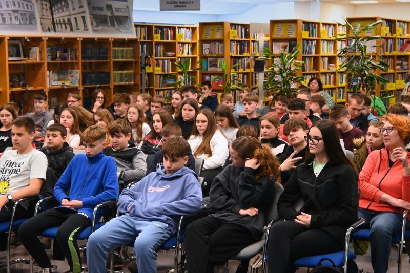Većina nastavnika na ovoj proljetnoj turneji po našim istočnim županijama ugodno me iznenadila idejama za što uspješnijih četrdeset i pet minuta razgovora o spisateljskom radu, što znači o svemu i svačemu ali najviše o knjigama koje sam napisala a učenici čitali za lektiru. Poslije sadržajnog susreta u Suhopolju posjećujemo OŠ August Cesarec u Špišić Bukovici u kojoj ćemo se družiti više od školskog sata jer su mlade novinarke Tena Pokupić i Klara Štimac zamolile za intervju. Pripremila ih je njihova učiteljica Vanda Barić. Svi u organizaciji potrudili su se raznim sadržajima ispuniti vrijeme, uljepšati pozornicu. Vidim veliki poster s mojim portretom i druge plakate od kojih je usred velikog prostoru sportske dvorana napravljeno intimnije mjesto. Dvorana zbog eha nije omiljena, koliko znam, nijednom književniku. No, u Špišić Bukovici sve je bilo prilagođeno drugačijoj sceni od sportske. Publika je blizu, na parketu, a ne na tribinama kao na košarkaškoj utakmici. Učenici su bili koncentrirani, strpljivi i činilo se zainteresirani za priču. Sjedim u školskoj klupi ispred mojih knjiga, koje uvijek pri ruci ima Alfina promotorica Dinae G. Kovač. Za intervju moram preseliti na plavi kožni dvosjed, onakav kakav se viđa na festivalima i sajmovima poput Frankfurtskog ili Zagrebačkog, Pulskog. Baš štosno! Simpatični učenik kao pravi profesionalac snimao je cijeli susret videokamerom.