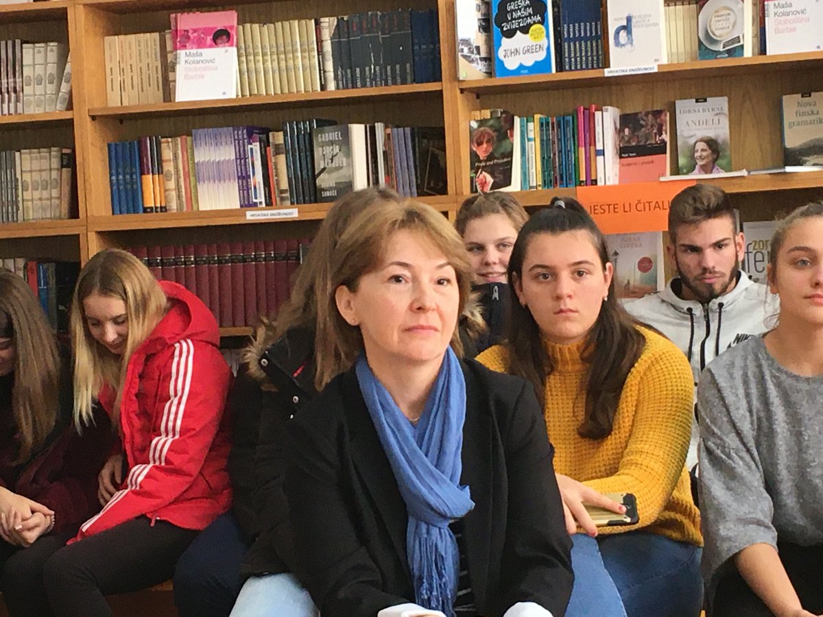 Poslije osvježenja, po suncem obasjanom parku, lijepom danu između dva ružna, prošetali smo svi do Srednje škole Ivan Švear u kojoj smo s gimnazijalcima drugih razreda razgovarali na temu: postaje li književnost za djecu bliska i odraslima? Moderatorica je uz Jadranka Bitenca bila knjižničarka Višnja Jeren. Pisci su kratko govorili o svom radu, iskustvu koje imaju s djecom čitateljima, odnosno odraslima. Spomenula sam odavno izrečenu tvrdnju da dječju knjigu mogu čitati i djeca i odrasli, a knjigu za odrasle samo odrasli. Ima naravno izuzetaka, a primjer može biti moja romansirana biografija „Rudolf Perešin – život i smrt“ koja je spominjana na druženju. S razlogom. Naime, Perešin je do petnaeste godine, do odlaska na školovanje za pilota živio nedaleko Ivanića i tu završio osnovnu školu. Razveselilo me da ivanićgradski gimnazijalci znaju tko je Perešin kraj čije biste prolaze svaki dan do škole. Sigurna sam, taj roman, oni pa i mlađi, osobito zaljubljenici u letenje i uzbudljive ratne priče naših heroja, mogu čitati s razumijevanjem. U jednoj fazi izrade kurikuluma „Škole za život“ taj je naslov bio na popisu lektire za najviši modul, a onda je nestao. Otom, potom.