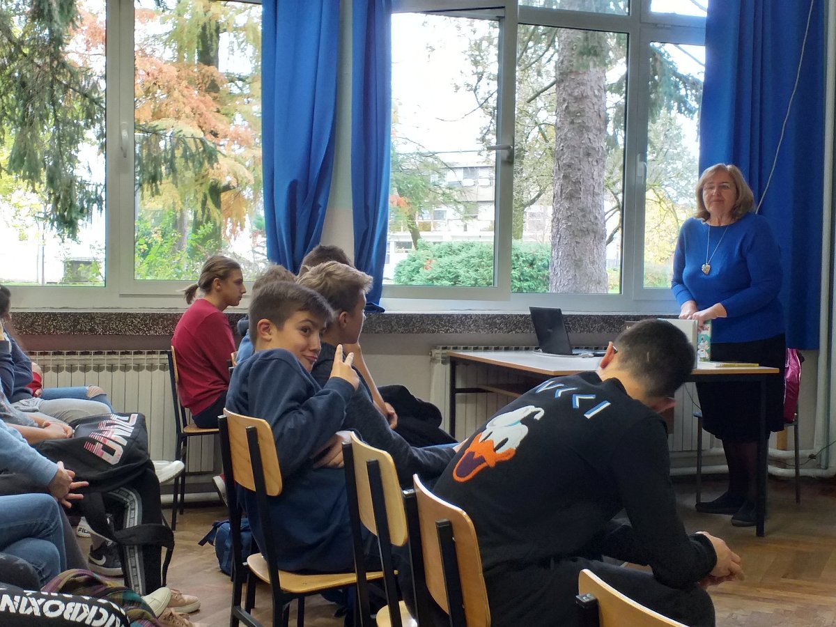 Sedmaši s kojima sam se srela nisu znali da će im na sat hrvatskog jezika stići književnica čiji roman „Maturalac“ čitaju za lektiru, otkrila je prof. hrvatskog Vlatka Rajski. To je bilo iznenađenje pa imaju opravdanje što nisu smisliti pitanja za autoricu, već su pažljivo slušali što im ima reći. Osim ponešto iz biografije ispričala sam kako je nastao taj rukopis, koji se sviđa mladima iako u njemu nema mobitela ni interneta. Govorila sam im o tipičnim likovima kakvi se mogu naći u svakom razredu, oko kojih se pletu jednako tako tipične situacije na svakom maturalnom putovanju osnovaca pa tako i u mojoj knjizi. Prstom sam uprla u dvije ljepuškaste djevojke, jednu plavušu i jednu crnku druge kose, vedre i nasmijane, i rekla: evo, svaka od njih može biti moja Ana iz romana, atraktivna i karizmatična. Smijeh je ispunio prostoriju, a da sam pogodila, potvrdila je prof. Rajski. Zanimljivo im je bilo i objašnjenje kako su kreirani likovi razrednice Veronike/Perle i profesora tjelesnog Zvonka Trabića, zvanog Stativa, koje sam kao inspiraciju našla u dvoje mojih profesora, profesorice zemljopisa i profesora tjelesnog odgoja.