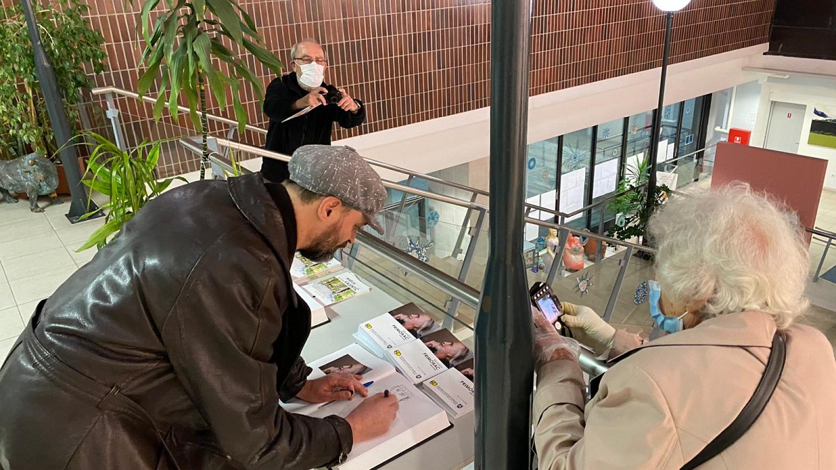 U svom već puno puta opisanom dugom kožnatom kaputu i s legendarnom kapom koja krasi gotovo sve njegove fotografije, osim moje, ušetao je Damir Karakaš. Potpisao se u knjigu dojmova crtežom Likote i komentarom izložbe od kojeg je autorici zatitralo srce. Većina ostalih kolega ispričala se kovid ispričnicom, ali smo ih zato gledali i komentirali njihove fotografije obješene na zidu. Došla je i kolegica iz Večernjaka Diana Kučinić, pa fotografkinja i profesorica na zagrebačkom Tekstlno-tehnološkom fakultetu Đurđica Kocijančić, kolega iz Fotokluba Zagreb i prijatelj s fejsa Željko Novaković te osoba koja je mogla prva imati ispriku za nedolazak, u koju nitko ne bi posumnjao, 94-godišnja Slavka Pavić – supruga legendarnog hrvatskog fotografa Milana Pavića – još uvijek aktivna fotografkinja! Došla je i OTV televizija. Moglo bi se reći: gotovo pa gužva.