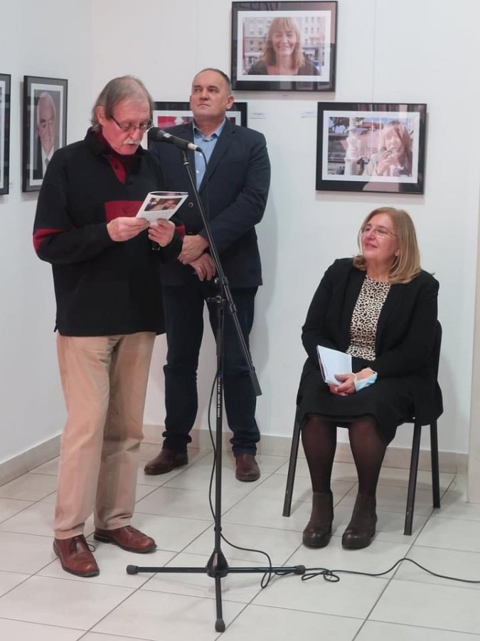 Što god se moglo zakomplicirati – zakompliciralo se. Već sam vidjela prazne hodnike Narodnog sveučilišta Dubrava, Galeriju s nas nekolicinom. Tužno! A onda su počeli dolaziti moji „modeli“, „Moje kolege“. Među prvima novinar i pisac Vlado Rajić sa suprugom Deanom Knežević, novinarkom i mojom prijateljicom, pa dragi prijatelj književnik Dubravko Jelačić Bužimski koji je dobio zadatak od Vinka Šebreka da pročita moju biografiju i njegov tekst iz kataloga. Jedino je on izloženu fotografiju „podijelio“ s prijateljem Mirom Gavranom, odnedavno predsjednikom Matice hrvatske. Iznenađen: otkud mi taj snimak? Za njima je pod maskom, kako priliči, ušetao Goran Tribuson, koji se našalio na račun dolaska u nemila vremena, rekavši „kako ja vama dvoma ne bih došao“, misleći i na Strahimira.